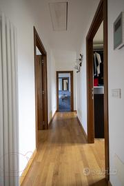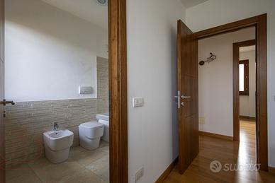 La zona notte ospita tre camere da letto, di cui una con bagno en suite dotato di vasca, oltre a un secondo bagno con doccia. L'intero piano è rifinito con parquet, che dona calore ed eleganza agli ambienti.