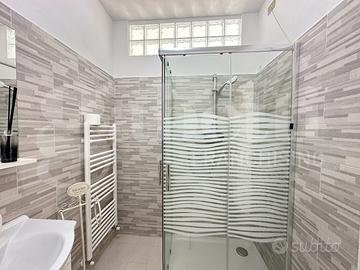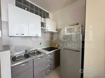 L'ingresso conduce a un grande ambiente open space con divano letto, angolo cottura attrezzato e zona pranzo. Il bagno spazioso è dotato di un comodo box doccia.