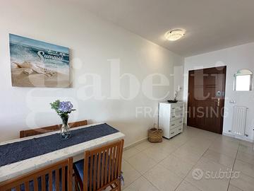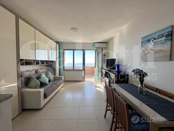 In una posizione tranquilla e riservata, defilata dalla via principale ma comoda ai servizi, proponiamo un ampio monolocale luminoso fronte mare, situato al piano rialzato del prestigioso complesso residenziale Gianni Z.