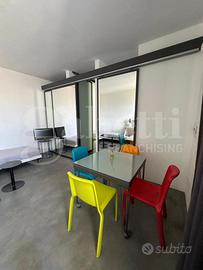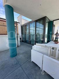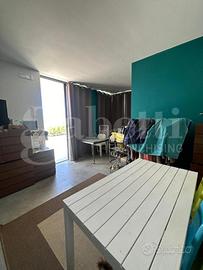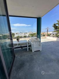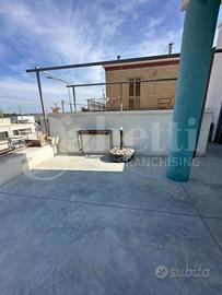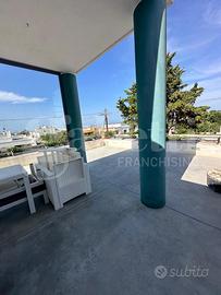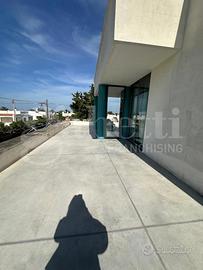 Un piano terra ed un primo piano composte da zona soggiorno, una zona pranzo, due camere da letto e due bagni oltre ad una veranda esterna per una superficie di circa 80 mq., oltre ad un vano cucina realizzato in adiacenza, della superficie 7 mq., vista mare.