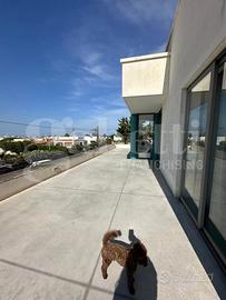Un piano terra ed un primo piano composte da zona soggiorno, una zona pranzo, due camere da letto e due bagni oltre ad una veranda esterna per una superficie di circa 80 mq., oltre ad un vano cucina realizzato in adiacenza, della superficie 7 mq., vista mare.