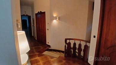 al piano terra troviamo un ampio ingresso dove salta subito all'occhio una elegantissima scala che porta al primo piano dell'appartamento composto da un grande e luminoso salone , una grande cucina , uno studio, due camere dal letto molto ampie e luminose e due comodi bagni.