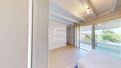 Al piano primo troviamo la master room con bella loggia coperta di 15 mq, bagno privato e cabina armadio, una seconda camera matrimoniale e un bagno finestrato.
