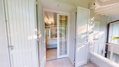 Viene venduta completamente arredata e corredata come da servizio fotografico allegato ed è composta al piano terra da soggiorno con cucina abitabile separata serviti da grandi vetrate alzanti scorrevoli che accedono ai giardini e direttamente alla splendida piscina; un bagno finestrato completa il piano.