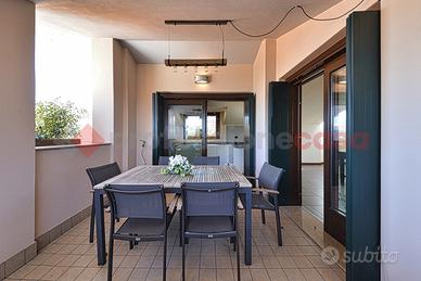 L'immobile è dotato di impianto d'allarme volumetrico e perimetrale, aria condizionata nella zona giorno e nella zona notte, porta blindata, infissi doppio vetro in legno, parquet ovunque, tranne che nei bagni.