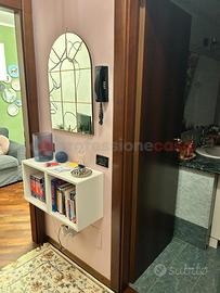 Primo piano, soggiorno luminoso con balconcino, cucina a vista, bagno con doccia e camera matrimoniale. Arredi curati, contesto tranquillo.