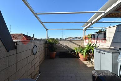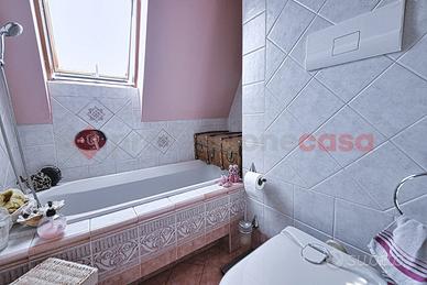 La soluzione è composta al primo piano da un ampio soggiorno con accesso e cucina abitabile entrambi dotati di balcone, bagno con doccia finestrato e un comodo ripostiglio; proseguendo con un ampia e comoda scala in marmo si accese al piano superiore composto da due ampie camere matrimoniali di cui una dotata di terrazzino. A completare la zona notte un elegante bagno con doccia e vasca in muratura.