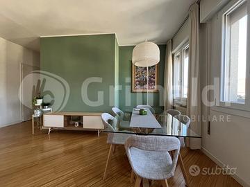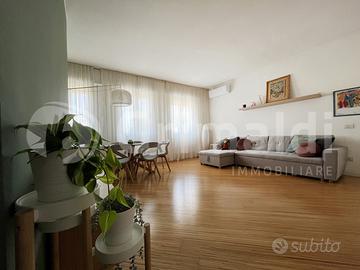 CENTRO STORICO. In ottima posizione, a pochi passi dalla zona Ospedali e dalla zona pedonale del centro storico di Padova, elegante appartamento all'ultimo piano interamete arredato. Ingresso nell'ampio soggiorno con deliziosa zona pranzo, cucina separata abitabile, comodissima dispensa/ripostiglio, disimpegno zona note con 2 camere di cui una spaziosa camera matrimoniale con bagno padronale finestrato, camera singola con letto a una piazza e mezza, cabina armadi ben attrezzata e altro bagno completo. Palazzina dotata di ascensore. Arredo completo moderno e ben curato, condizionatore, infissi con vetrocamera, zanzariere. Solo referenziati. Contratto max 18 mesi. Ape 215,45 Cl. F