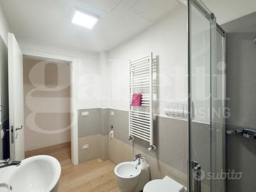 L'immobile che gode di grande luminosità, grazie all'esposizione (Sud-Ovest) e alle grandi vetrate che circondano tutta l'abitazione, è stato oggetto di una completa ristrutturazione nel 2014 e si compone di: ingresso, ampio soggiorno con angolo cottura e uscita sul primo terrazzo, con vista meravigliosa sul centro.