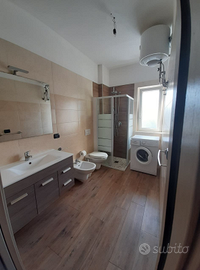 -bagno con doccia e lavatrice