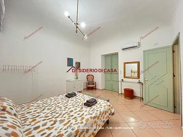 Internamente l'immobile si presenta con una distribuzione razionale degli spazi: ingresso, due cucinotti, tre camere da letto, un'ulteriore stanza versatile da adibire secondo le proprie esigenze, un comodo ripostiglio e due bagni entrambi dotati di doccia.