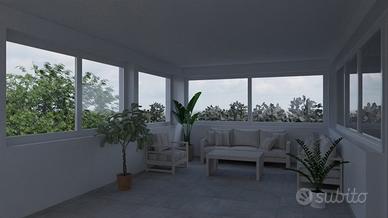 - piano secondo: disimpegno, grande veranda panoramica di mq 50 con complanare terrazza di mq 60, ampia camera da letto con wc doccia annesso.