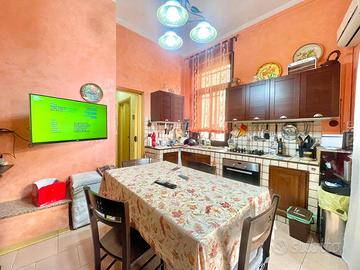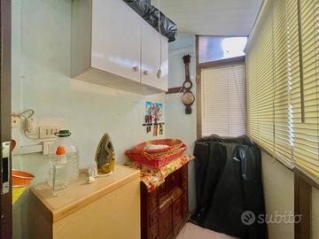 L'immobile oggetto di interesse è al primo piano ed impegna una superficie catastale di circa 98 mq commerciali così suddivisi: ingresso, cucina, soggiorno, tre camere e due servizi igienici. Gli interni si presentano in stato originario, con pavimentazione in ceramica, infissi in pvc e vetrocamera e porte in legno. È presente sia il riscaldamento autonomo tramite termosifoni alimentati a metano, sia le pompe di calore.