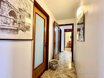 Gli interni si presentano in ottimo stato, con pavimenti in scaglie di marmo e infissi in legno che mantengono il fascino dellepoca senza rinunciare alla funzionalità.