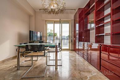 Rif: 22841108-3172 Classe energetica: F - EPglnr: 156.00 kWh/m² PALERMO - VIA AQUILEIA 10 - TRANSITORIO APPARTAMENTO ARREDATO MQ 189 Proponiamo in transitorio (12/18 mesi), riservato a persone referenziate con reddito dimostrabile, un prestigioso appartamento arredato di 189 mq, posto al 6° piano di un elegante stabile dotato di servizio di portierato. Limmobile, completamente arredato, gode di doppia esposizione che assicura eccellente luminosità durante tutto larco della giornata. Lingresso ampio e rappresentativo conduce a un salone doppio, particolarmente luminoso grazie alla presenza di una grande finestra e di un balcone con affaccio su Via Aquileia. La cucina è abitabile, anchessa arredata e attrezzata, ed è completa di veranda con seconda cucina, ideale per cucinare in totale comodità anche allesterno, oltre a una pratica dispensa. La zona notte è composta da tre camere, tutte molto luminose poiché affacciano su un ampio balcone su Via Lazio: due camere da letto e una camera soggiorno/studio, tutte arredate. Completano la proprietà due bagni e un ripostiglio. Tutti gli ambienti sono dotati di pompe di calore per il riscaldamento invernale e il raffrescamento estivo, garantendo comfort e funzionalità in ogni stagione. Le spese condominiali ammontano a circa 120,00 mensili. Lappartamento è situato in una zona estremamente vivace e ben servita, ricca di negozi, attività commerciali, servizi di ogni genere e mezzi di trasporto pubblico. La posizione strategica tra Via Lazio e Via Regione Siciliana, importanti arterie della città, consente un rapido accesso alle autostrade in direzione Trapani e Catania. Una soluzione abitativa pronta da vivere, ideale per chi cerca un appartamento arredato di ampia metratura in locazione transitoria, senza rinunciare a comfort, spazio e collegamenti rapidi.