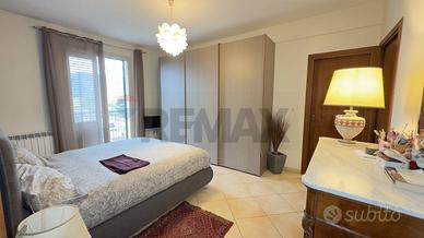 La cucina, abitabile e ben organizzata, è completa di lavanderia. La zona notte è composta da due camere da letto di cui una con cabina armadio, entrambe spaziose e luminose, e due bagni moderni e ben rifiniti. L'appartamento è dotato di impianto di riscaldamento autonomo a metano, con radiatori e pannelli radianti per un ambiente caldo e confortevole in ogni stagione.