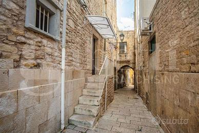 PALO DEL COLLE. Via Petrarca. Proponiamo in vendita un raffinato appartamento situato al secondo piano di un elegante edificio, con una vista panoramica sulla piazza principale e sulla storica Chiesa Madre. L'immobile, completamente ristrutturato, si distingue per un'ampia e luminosa zona giorno, che include un salone doppio con balcone terrazzato dal quale è possibile ammirare la vista sulla piazza, una cucina spaziosa e ben progettata, che si integra perfettamente con la zona living, un bagno e uno studio, ideale per chi desidera un ambiente riservato per il lavoro. La zona notte, separata da un elegante disimpegno, si compone di due ampie camere da letto, una delle quali con un bagno privato dotato di vasca Jacuzzi, offrendo così un angolo di assoluto relax. Gli spazi interni sono impreziositi da un elegante parquet che riveste l'intera abitazione, mentre gli infissi di alta qualità, con taglio termico (classe 3/A), garantiscono un eccellente isolamento termico e acustico. Il riscaldamento a pavimento e il raffrescamento a soffitto assicurano il massimo del comfort in tutte le stagioni dell'anno. L'appartamento è dotato di impianti tecnologici all'avanguardia, tra cui un sistema audio stereo integrato nel controsoffitto, un impianto di allarme e videosorveglianza, garantendo la massima sicurezza e tranquillità, e pannelli solari. Gli arredi fissi, tra cui la pregiata boiserie nel salone, sono inclusi nel prezzo. Inoltre, l'immobile dispone a piano terra di una cantinola con due stanze, e di un ampio box auto di 40 mq fronte strada, capace di ospitare comodamente due auto, offrendo una comoda soluzione per il parcheggio. A completamento della soluzione, si offre la possibilità di acquisto di un immobile di circa 40 mq situato al terzo piano composto da un piccolo disimpegno, cucina abitabile, un bagno e una camera da letto al prezzo di €70.000,00. Questo spazio, perfetto per ospiti o come studio privato, è impreziosito dal terrazzo che l