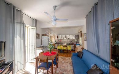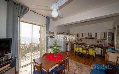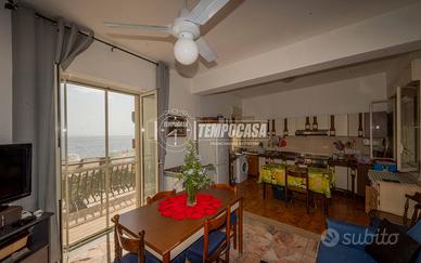 Ampia cucina-soggiorno con balcone vista mare e due finestre che garantiscono luce naturale per tutta la giornata.