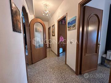 Appartamento panoramico in vendita di 153 mq catastali situato al 3° piano, perfetto per chi ama gli ambienti spaziosi e luminosi. L'immobile è caratterizzato dalla zona giorno open-space, bagno di servizio con box doccia e zona notte che comprende una camera matrimoniale con climatizzatore, due camerette e un secondo bagno con vasca e angolo lavanderia annesso. La soluzione gode di ottime condizioni interne, pavimentazione in marmo e infissi in legno con vetro doppio. L'appartamento è servito da balconi che ricoprono l'intero perimetro, dando luce ed aria a tutti gli ambienti. Completa la proprietà una porzione di lastrico solare di circa 100 mq posta al piano 4, ideale per momenti di relax e convivialità.