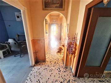 La tripla esposizione e la vista panoramica rendono l'immobile soleggiato e molto luminoso ed è così composto: ingresso in ampio disimpegno, salone, cucina, camere da letto, tre camerette, ognuna servita da balcone, e bagno con vasca.