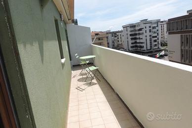 Appartamento panoramico - AFFITTO PER BREVI PERIODI - TRASFERTISTI. ideale per 1 persona. NO ANIMALI. L'appartamento si trova al 6^ e Ultimo piano, vi accoglie una ampio luminoso e soleggiato soggiorno pranzo arredato con grande tavolo in cristallo sedie e divano con penisola. Piccola cucina completa di tutto. Un piccolo disimpegno da accesso alla camera da letto ampia e comoda, arredata con grande letto, comodini, armadio e cassettiera. Un bagno luminoso e ampio. Balcone su tutta la lunghezza della facciata. Riscaldamento centralizzato, condizionatori caldo freddo. CANONE DI AFFITTO €650 MENSILI + 75 € DI CONDOMINIO ( riscaldamento, consumo acqua e pulizia parti comuni.) zona tranquilla, vicino al centro, vicino ai giardini V.le Repubblica,ospedale e clinica. Caparra 2 mesi
