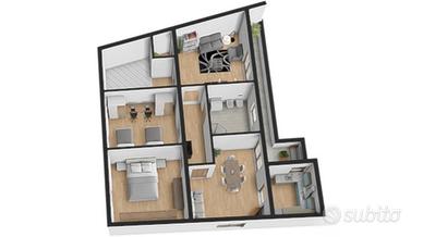 L'immobile, di circa 75 mq, è caratterizzato dall'ingresso su uno spazioso soggiorno, reso molto luminoso grazie alla presenza di una porta finestra che conduce sul balcone.