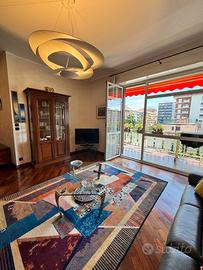 A Torino in piazza Guala , proponiamo in vendita stupendo appartamento di ampia metratura con una bellissima vista aperta , molto luminoso , affaccio su grande piazza senza ostruzione di edifici antistanti , balcone e terrazzo vivibili , cosi composto : ingresso living su ampio salone con ampia vetrata su balcone , disimpegno , cucina abitabile anch'essa con ampia vetrata doppia e molto luminosa , sgabuzzino , 2 bagni di ottime dimensioni , tre camera da letto di cui una con balcone , la zona notte si affaccia su un bellissimo parco con pineta . L'appartamento è impeccabile come da foto , con pavimenti in legno massello e porte in noce massiccio , all'ingresso troviamo il portoncino blindato , il condominio dispone di due ascensori + grande montacarico per eventuale traslochi , custode h 24 , non ci sono lavori straordinari in programma Garage e cantina nello stabile.