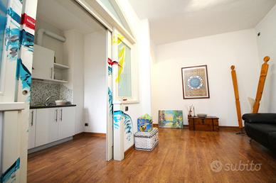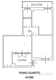 L'appartamento è composto da ingresso che introduce all'ampio disimpegno alla cucina utilizzabile come soggiorno: tramite vetrata scorrevole si gode della luminosità della cucina. Tramite piccolo disimpegno si accede al bagno ristrutturato circa 10 anni e a due ampie camere di cui una servita da balcone.