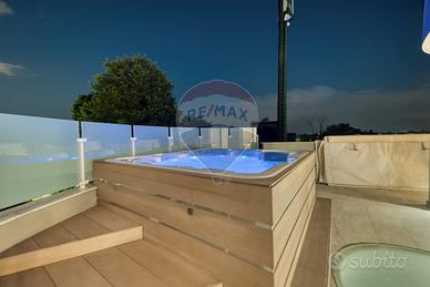Allesterno, sul terrazzo, è presente una vasca...