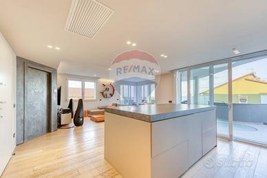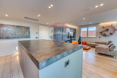 La cucina a vista è moderna, funzionale e perfettamente integrata con lambiente living.