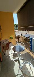 Appartamento di 60 mq in parco con piscina campi da tennis e servizio portierato. A 100 metri dal mare. Ingresso in salone living. Cucina, camera da letto, 2 bagni, terrazzo. 5 posti letto