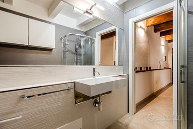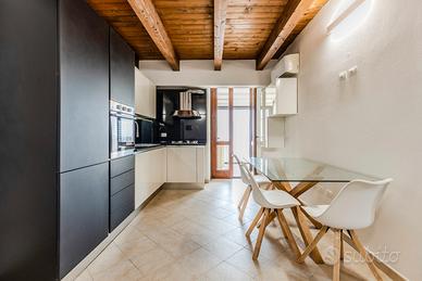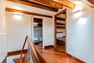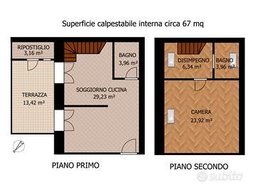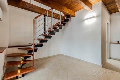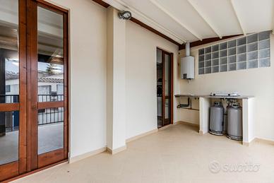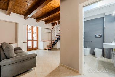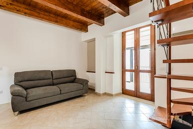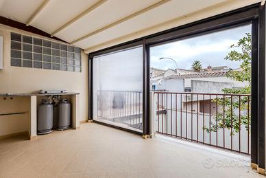 RIF 1007 455. Si affitta esclusivamente con contratto transitorio (12/18 mesi) a persone con reddito dimostrabile - No Fumatori e No Animali. A Pirri, nella via Balilla, proponiamo in locazione un appartamento arredato che si sviluppa su tre livelli, dall'ingresso al piano terra (condiviso con un solo altro appartamento) si accede a un'area di pertinenza utilizzabile come posto moto, posto bici o semplice ripostiglio, dalle scale si accede al primo piano in cui è presente un ingresso sulla zona giorno, divisa in due ambienti, un soggiorno e una cucina che si affacciano entrambi su una terrazza a livello che si può chiudere completamente, grazie alle tende verticali e alla pergotenda di copertura. Nella terrazza è presente anche un comodo ripostiglio a uso lavanderia. Attraverso una scala interna in legno, si accede alla zona notte del secondo piano, pavimentata in parquet e con una spaziosa camera matrimoniale, la zona è mansardata, con al centro un'altezza di circa 2,10 m a spiovere sui lati a circa un 1,20 mt. La casa dispone di due bagni completi entrambi con doccia, uno al piano primo e l'altro al secondo ed è climatizzata con le pompe di calore e ha lo scaldino a gas per l'acqua sanitaria. Insieme all'appartamento viene locato anche un posto auto in autorimessa distante circa 130 metri dall'appartamento, nella stessa via.