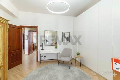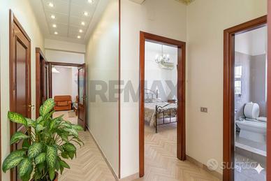 L'immobile, di circa 117 mq, si trova al primo piano di un edificio senza ascensore (la facciata completamente rifatta). L'appartamento è in buone condizioni e presenta una disposizione funzionale degli spazi, composto da quattro vani principali oltre accessori, così suddivisi: ingresso su saletta, ampio soggiorno doppio, cucina abitabile e bagno con vasca. Il corridoio disimpegna due camere da letto, una stanzetta/studio, un ripostiglio e una comoda lavanderia con box doccia.