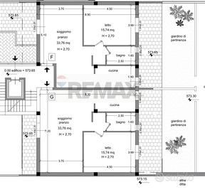 ingresso su soggiorno con angolo cottura, due camere da letto bagno e lavanderia e giardino di pertinenza.