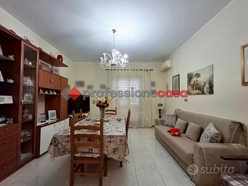 Professionecasa Paesi Etnei propone in vendita a Pedara centro, a soli 500 metri da Piazza del Popolo, più precisamente in Via Giorgio la Pira, ampio e luminoso appartamento di quattro vani posto al primo piano di uno stabile in piccolo residence. Il quadrilocale si presenta in buone condizioni generali, è dotato di riscaldamento autonomo, di predisposizione per l'installazione di climatizzatori e si estende per una metratura di circa 90 mq. Esternamente sono presenti due balconi di cui uno angolare, con esposizione Sud, Est e Nord, e con parziale vista mare. All'interno l'immobile è composto da ingresso su salone di un vano e mezzo, disimpegno che conduce a due camere da letto, ampio ripostiglio finestrato, cucina abitabile, bagno e lavanderia con secondo servizio. Ampia possibilità di parcheggio nei pressi dell'immobile. APE in fase di rilascio.