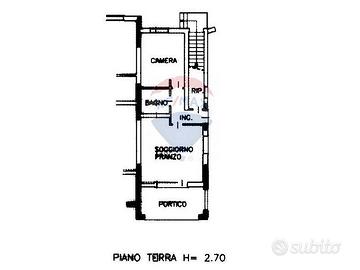 Un ripostiglio, la camera matrimoniale ed il bagno con vasca sono entrambi accessibili dal corridoio d'entrata.