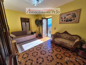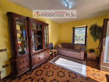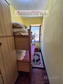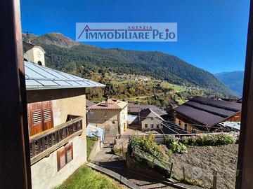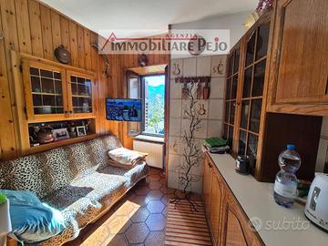 L'appartamento, posto al piano d'ingresso, accoglie con un'atmosfera calda e autentica. Si compone di una cucina abitabile, una camera/soggiorno luminosa con balcone panoramico affacciato sulla valle, una camera con letto a castello perfetta per ospiti o bambini e un bagno finestrato.