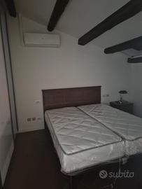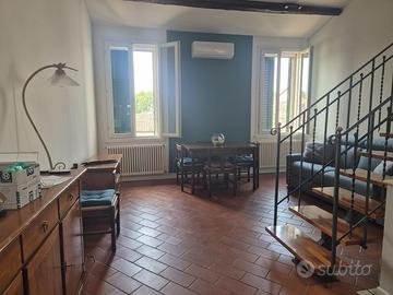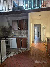 Appartamento in affitto posto al secondo piano con ingresso soggiorno-pranzo, cucina a vista, disimpegno, due bagni, due camere da letto, soppalco al terzo piano e garage al piano terra.