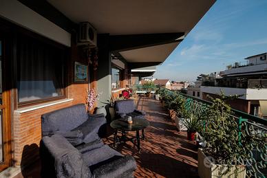 Terrazzo molto grande e soleggiato, perfetto per rilassarsi o cenare all'aperto