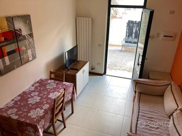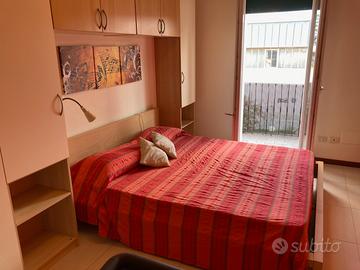 Con ingresso esclusivo a piano terra, direttamente su zona giorno, con salotto/letto - soggiorno e angolo cottura. Con scala a chiocciola, si sale al piano superiore, dove si trova la camera matrimoniale e il bagno con doccia e lavatrice. Inoltre piccolo balconcino. Le utenze sono già allacciate e non si devono fare le volture dei contratti. Si paga mensilmente i consumi effettuati. A disposizione un parcheggio chiuso e videosorvegliate, con posti auto numerati ed esclusivi. Nel condominio é attiva una rete wi-fi fibra con ottima qualità di segnale ed é comprese nelle spese fisse di condominio. Non é permesso ospitare animali. Ci interessa solo inquilini di lunga durata.