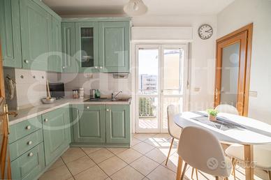 La cucina è abitabile, separata e ben organizzata, e dispone di un pratico locale ripostiglio.Dalla cucina si accede al terrazzo che circonda la proprietà per circa 30 mq, offrendo piacevoli spazi esterni ideali per momenti di relax all'aperto.