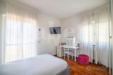 La zona notte, ben disimpegnata, è composta da tre camere da letto, di cui una attualmente adibita a studio, e due bagni finestrati.