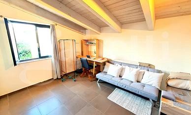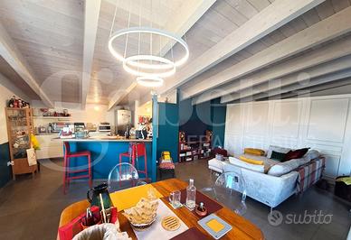 Impreziosisce il tutto la presenza di travi in legno a vista che rendono l'ambiente caldo ed suggestivo.