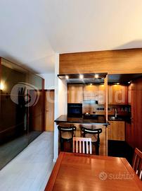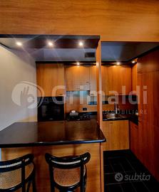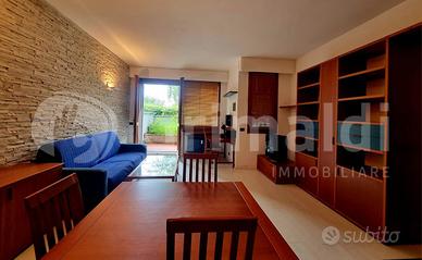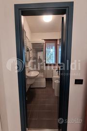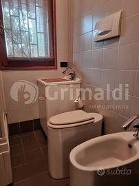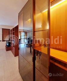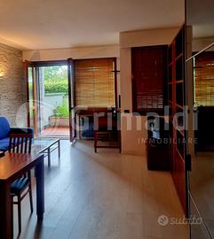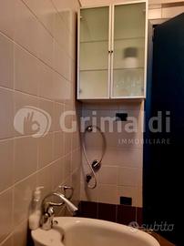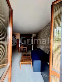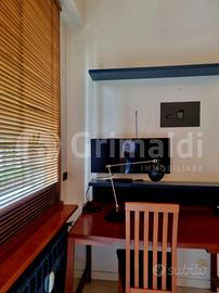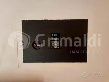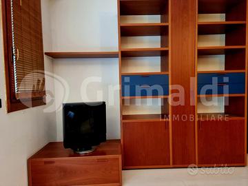 L'ampio monolocale è composto da ingresso con porta blindata, ampia zona giorno con portafinestra sul terrazzo, due finestre, cucina a vista arredata con pavimento in ceramica. Oltre la porta una zona notte. Il bagno, con finestra, è rivestito in ceramica e completo di doccia sauna Teuco e mobile lavatoio. Il terrazzo, parzialmente coperto, ha due grandi tende da sole manuali ed è stato costruito in origine e mantenuto con la grande fioriera piantumata. Attacco idrico esterno, pavimentazione in cotto da sistemare. Cancelletti in acciaio, tapparelle in ferro semiblindate elettriche, zanzariere ad ogni finestra con serramenti in legno con doppi vetri. Una cassaforte a muro interna Cisa a combinazione. Impianti condominiali per videocitofono e per satellitare tv già predisposti. Cassaforte a muro 5 cifre Cisa. N. 2 prese impianto telefono fisso. Comoda possibilità di installazione impianto aria condizionata Riscaldamento centralizzato a gas con singole valvole termostatiche. Contatore acqua sotto il lavello.