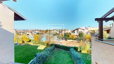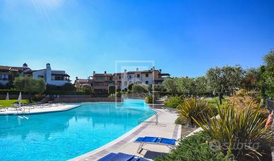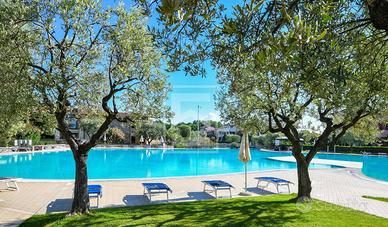 Trilocale con terrazza al Garda Resort Village, uno splendido residence con un enorme parco, piscine, ristorante e una vasta gamma di strutture sportive e ricreative.