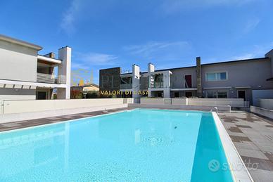 L'immobile si trova in recente residence con piscina ed è così composto: ingresso da scala esterna, soggiorno con cucina con accesso al terrazzo abitabile, camera matrimoniale, camera singola e due bagni finestrati.