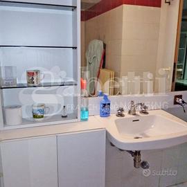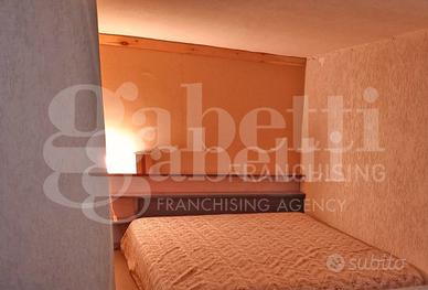 L'appartamento dispone di un piccolo soggiorno con cucinino e bagno, di due stanze in soppalco, privo di finestre.