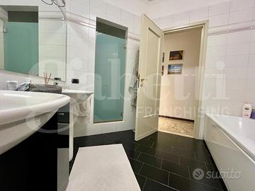 Attraverso il corridoio si accede alla zona notte, composta da due ampie camere matrimoniali e da un bagno principale dotato sia di vasca che di doccia. Una delle due camere è particolarmente luminosa grazie alle grandi vetrate ed è dotata di accesso diretto al terrazzo.