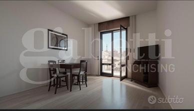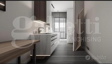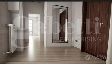 L'ampio ingresso ha accesso a tutti gli ambienti: sulla sinistra troviamo la cucina, affacciata su comodo balcone che si prolunga fino al soggiorno, mentre sulla destra vi è il reparto notte, composto da una camera matrimoniale di generose dimensioni con affaccio sulla seconda balconata ed uno studio/camera singola, servite da bagno finestrato.
