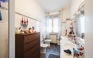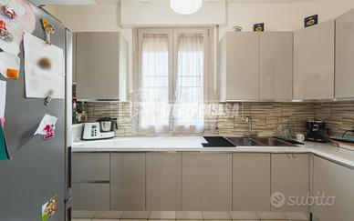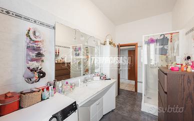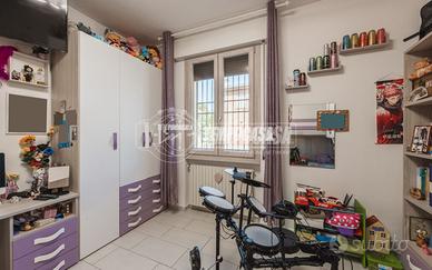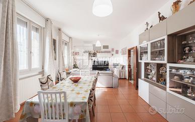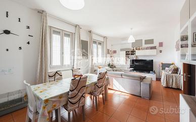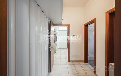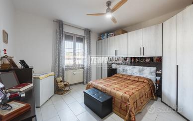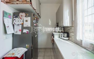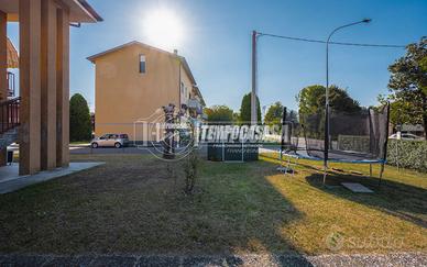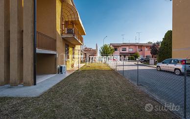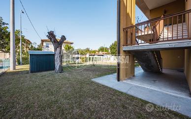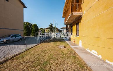 Trattasi di un appartamento con ingresso indipendente disposto tutto al piano terra, internamente composto da Ingresso (5,8 Mq), Soggiorno e Cucina (totali 39 Mq), Disimpegno notte (4 Mq), Camera matrimoniale (17 Mq), Camera doppia (16,5 Mq), ampio Ripostiglio finestrato (7 Mq) la cui dimensione differisce di poco rispetto ad una cameretta, Bagno (7,6 Mq). Completano la proprietà una Cantina inserita nel fabbricato principale accessibile dal giardino, seconda Cantina al grezzo su due livelli all'interno del giardino privato. Inoltre, comproprietà di una porzione di corte adiacente al fabbricato, condivisa con la proprietà dell'abitazione del piano primo.